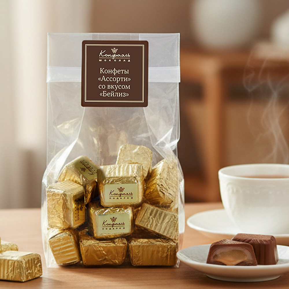 Конфеты из молочного шоколада со сливочной начинкой со вкусом "Бейлиз".