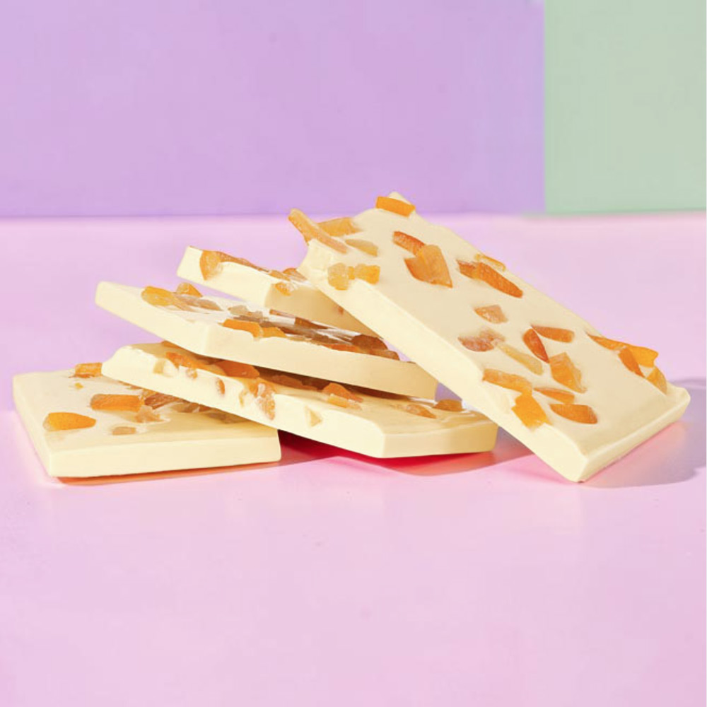 Это не простой, а особый десерт из белого шоколада: его нежнейший вкус дополнен пряной кислинкой апельсиновых цукатов. Благодаря их наличию, в таком лакомстве содержится более 60 флавоноидов, 170 различных фитонутриентов, целый набор витаминов.