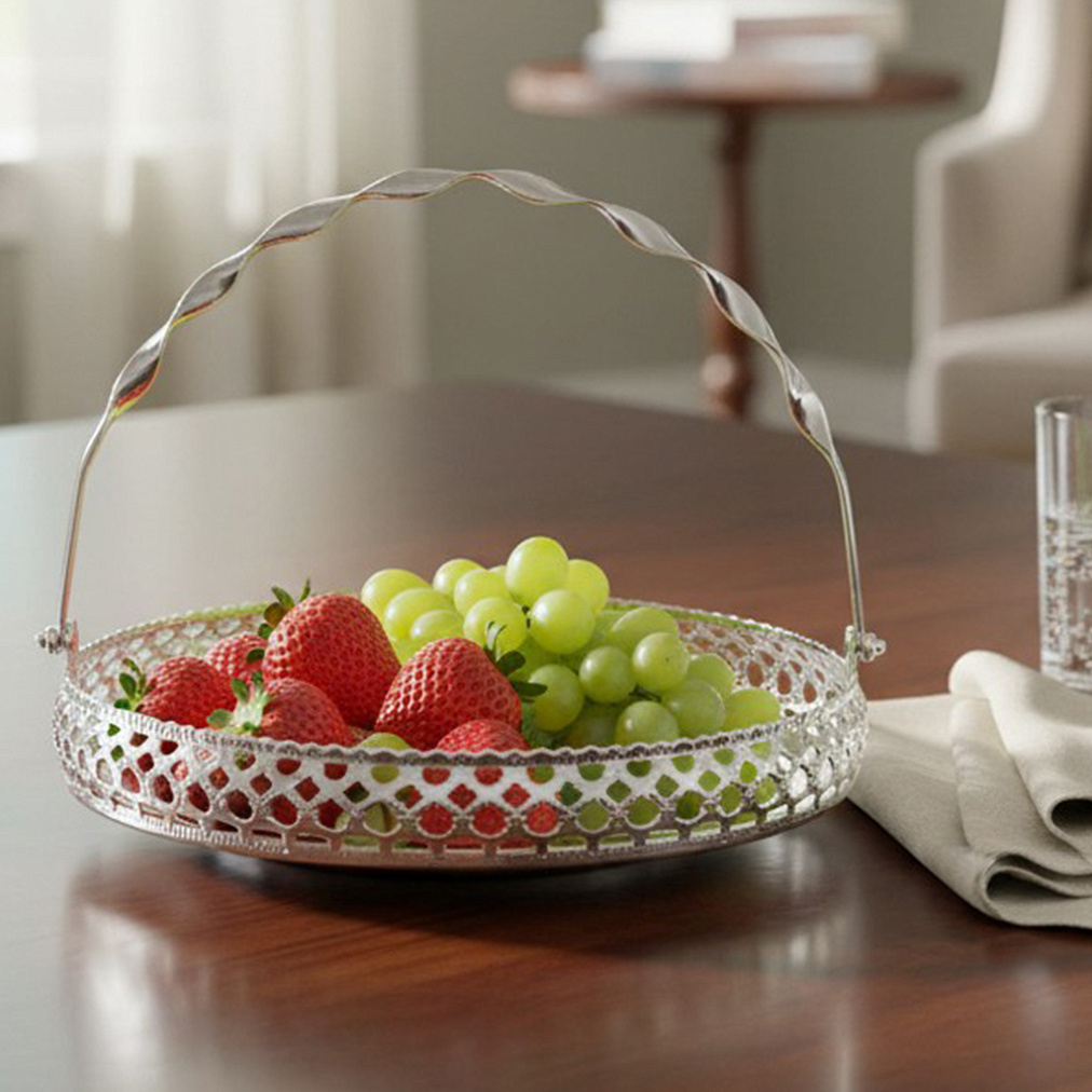 Блюдо круглое декоративное из металла (серебро)