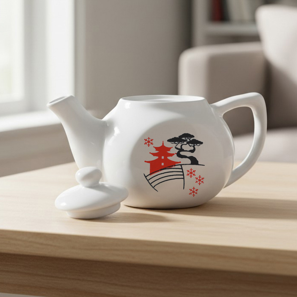 Маленький фарфоровый чайник с шелкографией — изящество в каждой детали