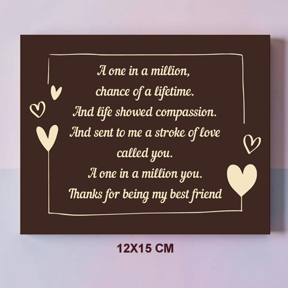 "Ваш текст" на индивидуальной открытке из молочного шоколада 15х12см