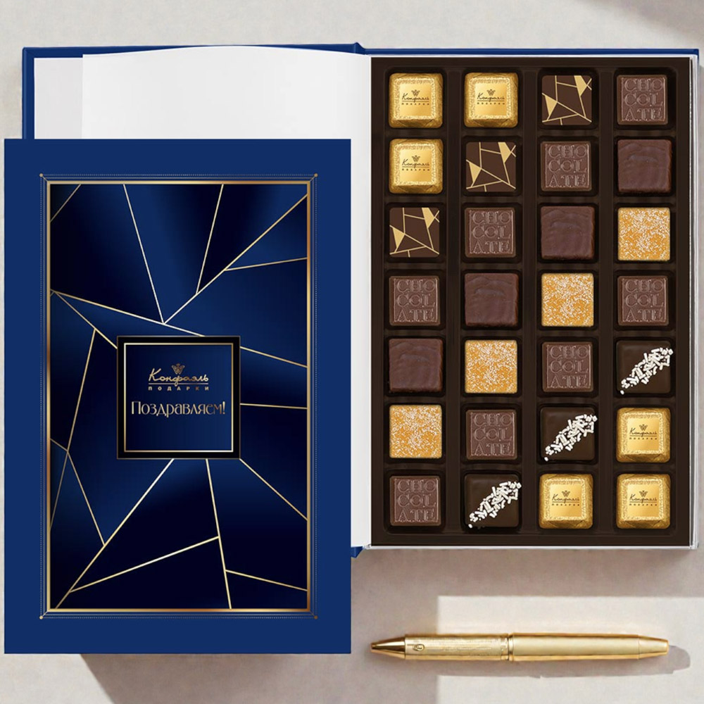 Состав: шоколад - сахар, какао тёртое, масло какао, сыворотка молочная сухая, сухое цельное молоко, эмульгатор (лецитин соевый), ароматизаторы; начинки - сахар, патока, какао-масло, какао тертое, молоко сгущенное (молоко цельное, сахар (сахароза, лактоза)), жир специального назначения (масло ши, рапсовое масло, соевое масло, антиокислитель( лимонная кислота)), молоко сухое цельное, молоко сухое обезжиренное, белый шоколад (сахар, молоко сухое цельное, масло какао, эмульгатор (лецитин соевый), ароматизатор, соль), масла растительные рафинированные дезодорированные (подсолнечное, рапсовое, оливковое; масло сладко-сливочное, молоко сухое обезжиренное), масло сладко - сливочное, белок яичный порошкообразный, натуральный концентрированный сок (апельсина), клубника сушеная, кумкват сушеный, вафельная крошка (мука пшеничная х/п первого сорта, сахар, масло кокосовое рафинированное дезодорированное, эмульгатор (лецитин соевый), пшеничные волокна (клетчатка), ароматизатор), цукаты лимонных корочек, папайя сушеная, ананас сушеный, финики, слива свежая, абрикос свежий, ядра орехов фундука, ядра орехов миндаля,стабилизаторы (мальтодекстрин), желирующий агент (агар), желатин говяжий, коньяк (дистиллят коньячный, вода, сахар, пищевой краситель (сахарный колер)), спирт этиловый ректификованный, консервант (сорбиновая кислота), регулятор кислотности (лимонная кислота), эмульгаторы (лецитин соевый, Е471), ароматизаторы, пищевые красители (сахарный колер, куркумин, медные комплексы хлорофиллов и хлорофиллинов); декор - пищевые красители (Е171, куркумин).