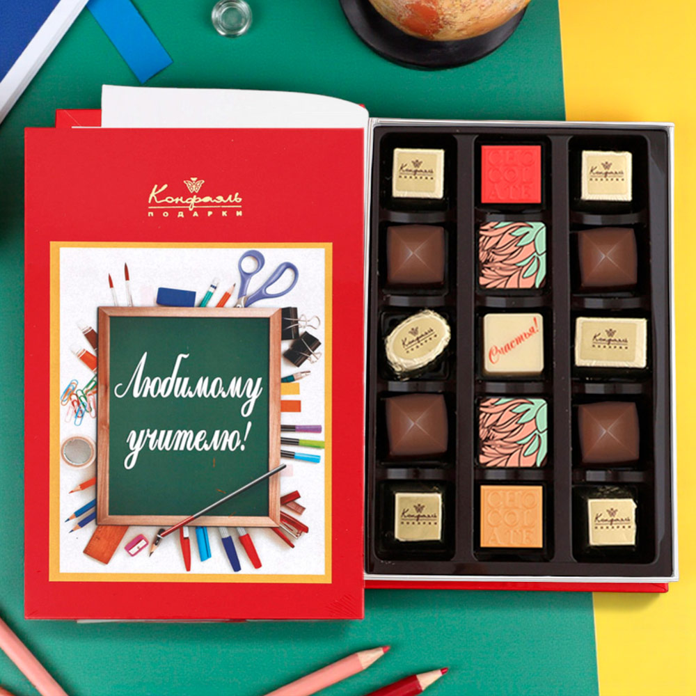 Если вы решили выразить своё глубокое уважение к учителю вашего ребёнка, то сделайте это оригинально! Подарите ему не стандартную коробку конфет, которой уже никого не удивить, а книгу полную шоколадных конфет. Конфеты с различными начинками и декором изготовлены мастерами из элитных сортов шоколада. Лучшего подарка для любимого учителя вашего сынишки или дочурки просто не найти!