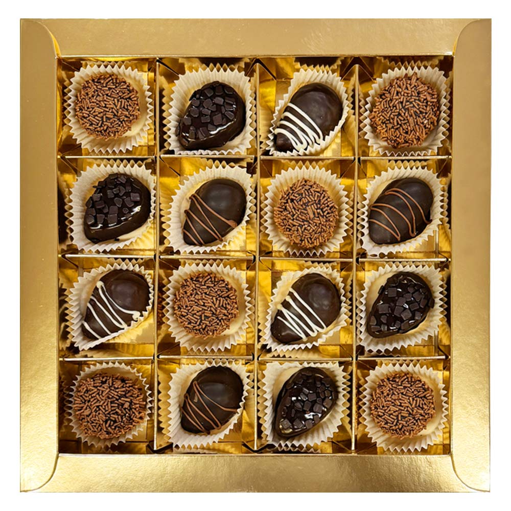 Состав: шоколад - сахар, какао тёртое, масло какао, эмульгатор (лецитин соевый), ароматизатор; начинки - сахар, патока, какао-масло, какао тертое, молоко сгущенное (молоко цельное, сахар (сахароза, лактоза)), масла растительные рафинированные дезодорированные (подсолнечное, рапсовое, оливковое; масло сладко-сливочное, молоко сухое обезжиренное), абрикос свежий, марципановая масса, какао-порошок, стабилизаторы (мальтодекстрин), желирующий агент (агар), коньяк (дистиллят коньячный, вода, сахар, пищевой краситель (сахарный колер)), спирт этиловый ректификованный, консервант (сорбиновая кислота), регулятор кислотности (лимонная кислота), эмульгаторы (лецитин соевый, Е471), ароматизаторы.