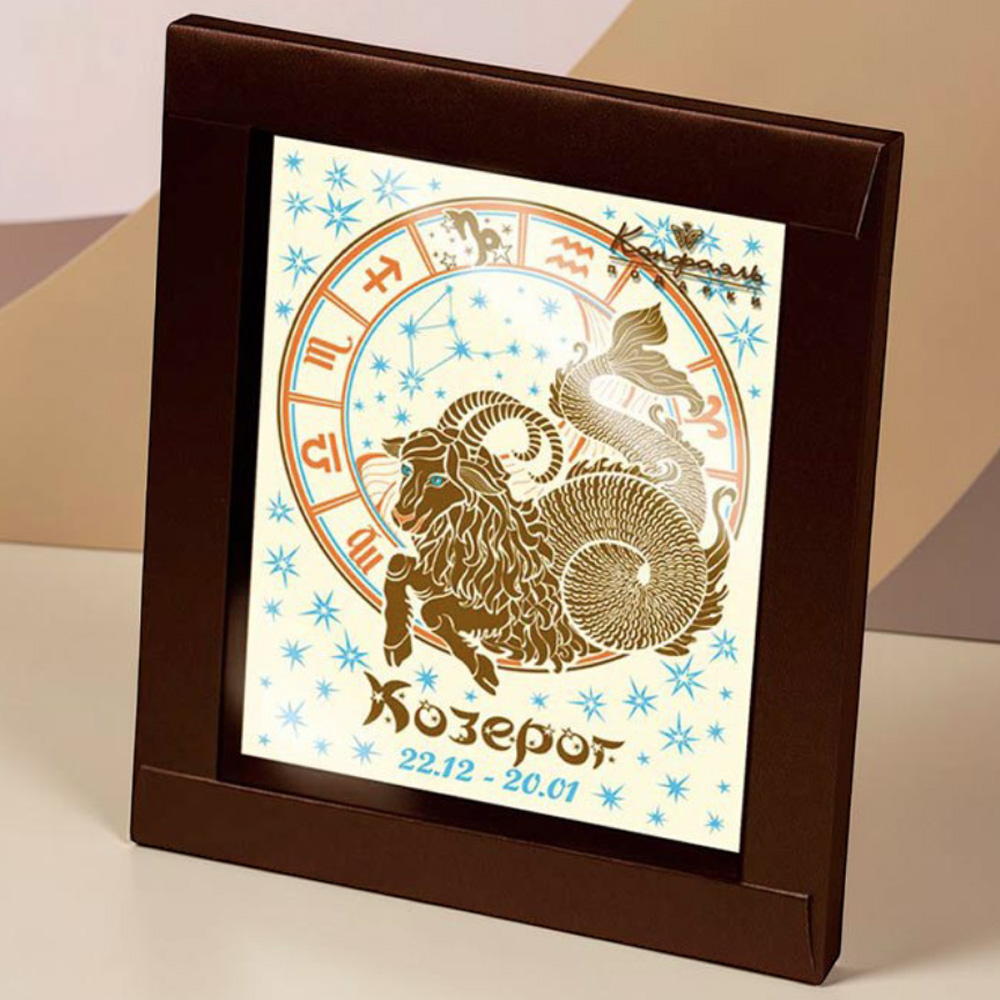 Если вы - Козерог, то вам будет приятно взять в руки деликатес, предназначенный именно для вас! Ведь художественное изображение фигурки-символа на шоколаде указывает на вашу зодиакальную принадлежность. Насладитесь отменным вкусом отменного десерта!