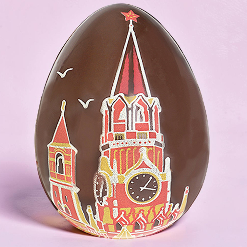Десертное яйцо из молочного шоколада, украшенное изображением Кремлёвских башен.