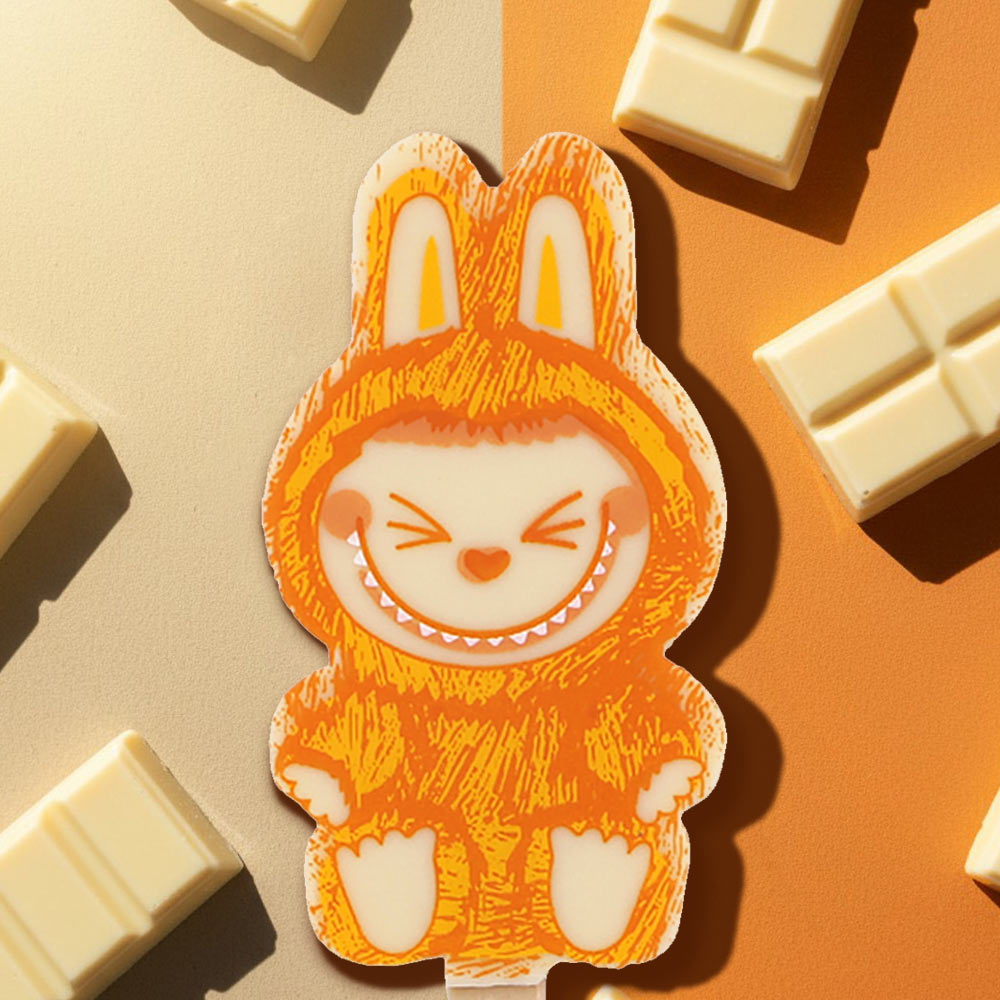 "Лабубушка" шоколад белый на палочке (оранжевый декор)19г