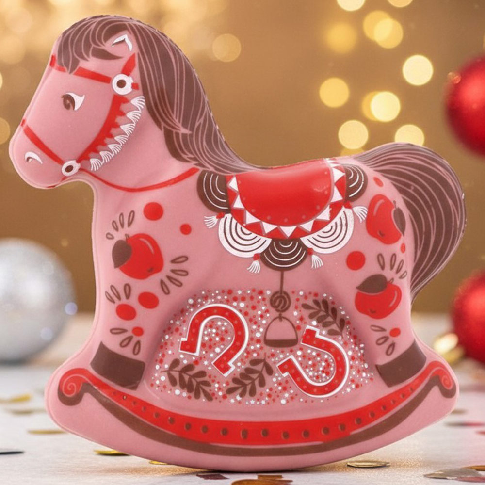 Встречайте год Лошади с особенным подарком — восхитительной шоколадной скульптурой в форме грациозной лошадки! Это не просто сладость, а настоящее произведение кондитерского искусства с нежным клубничным вкусом.