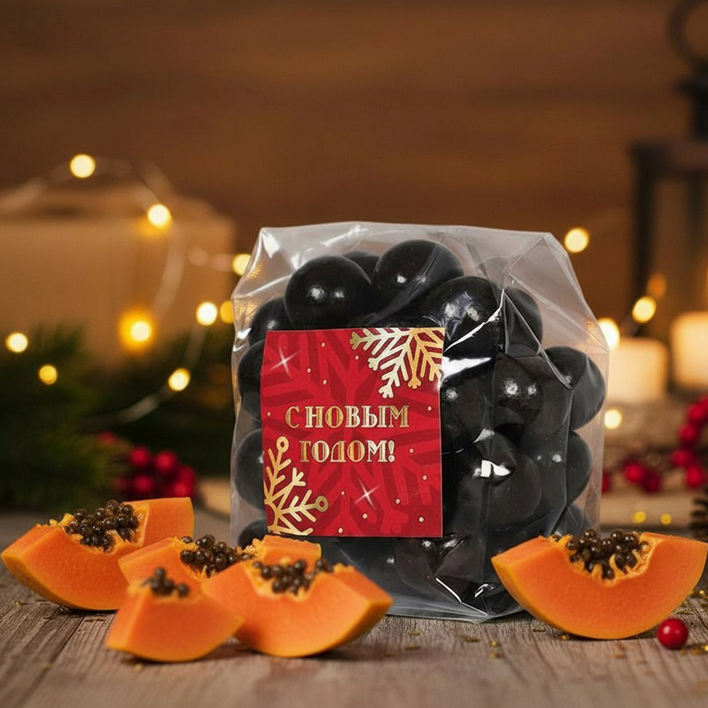 Состав:папайя сушеная, сахар, тертое какао, масло какао, какао-порошок, эмульгатор (лецитин соевый), натуральная ваниль, глазирователь (капол). Продукция производится на предприятии, где используются арахис, кунжут, орехи, яичные и молочные продукты, злаки, содержащие глютен.