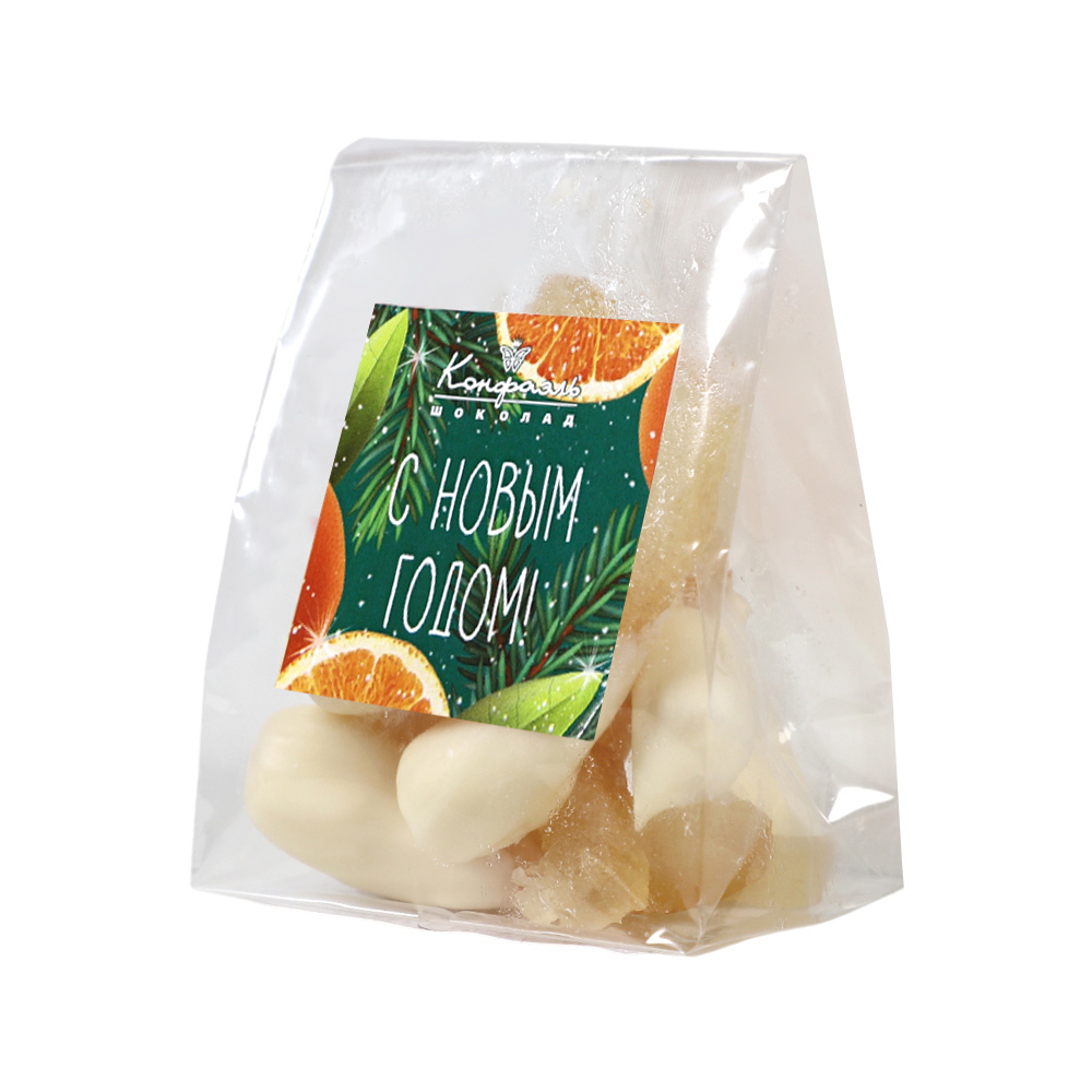 «Любимый вкус» цукаты лимонные корочки в белом шоколаде 50г (зеленое новогоднее оформление)