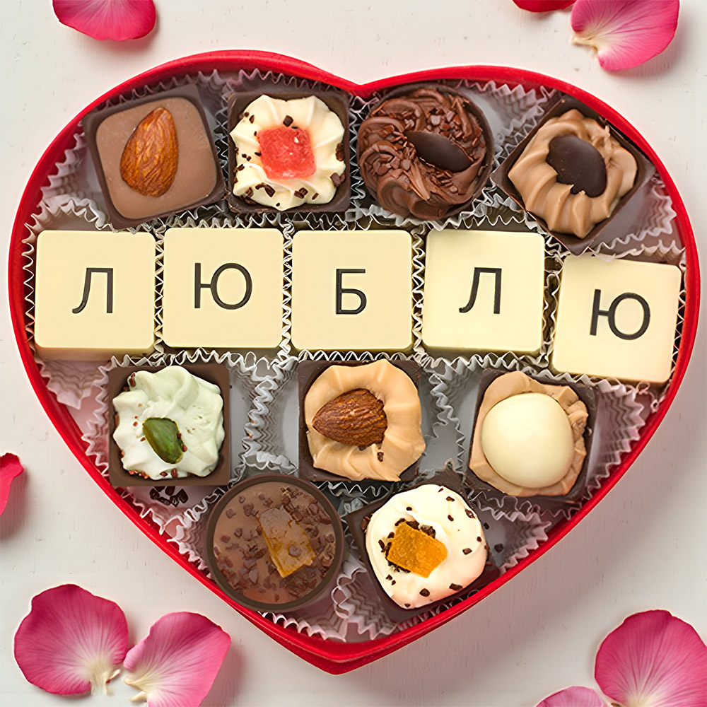 "Люблю" набор конфет ручной работы сердце красное