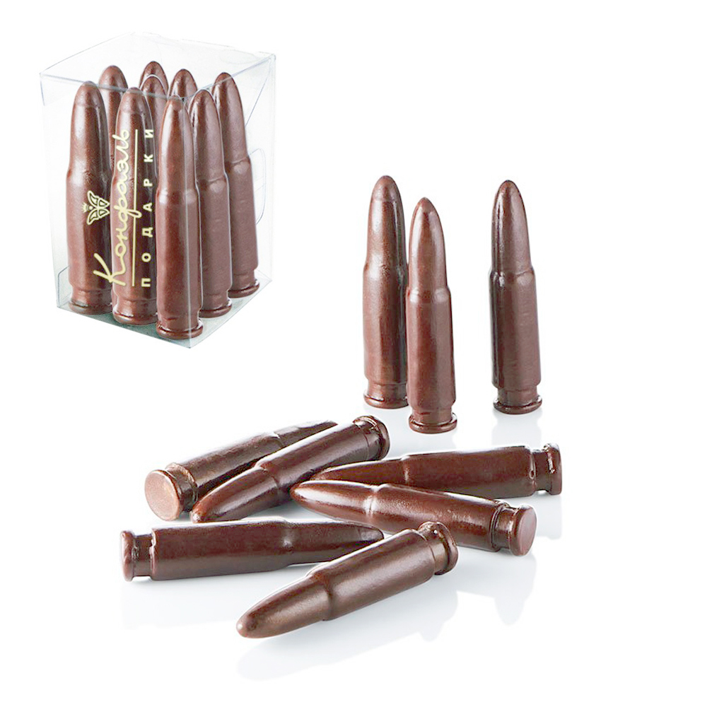 Набор патронов из молочный шоколада приятно удивит вашего мужчину и вскружит ему голову магическим ароматом какао-бобов.