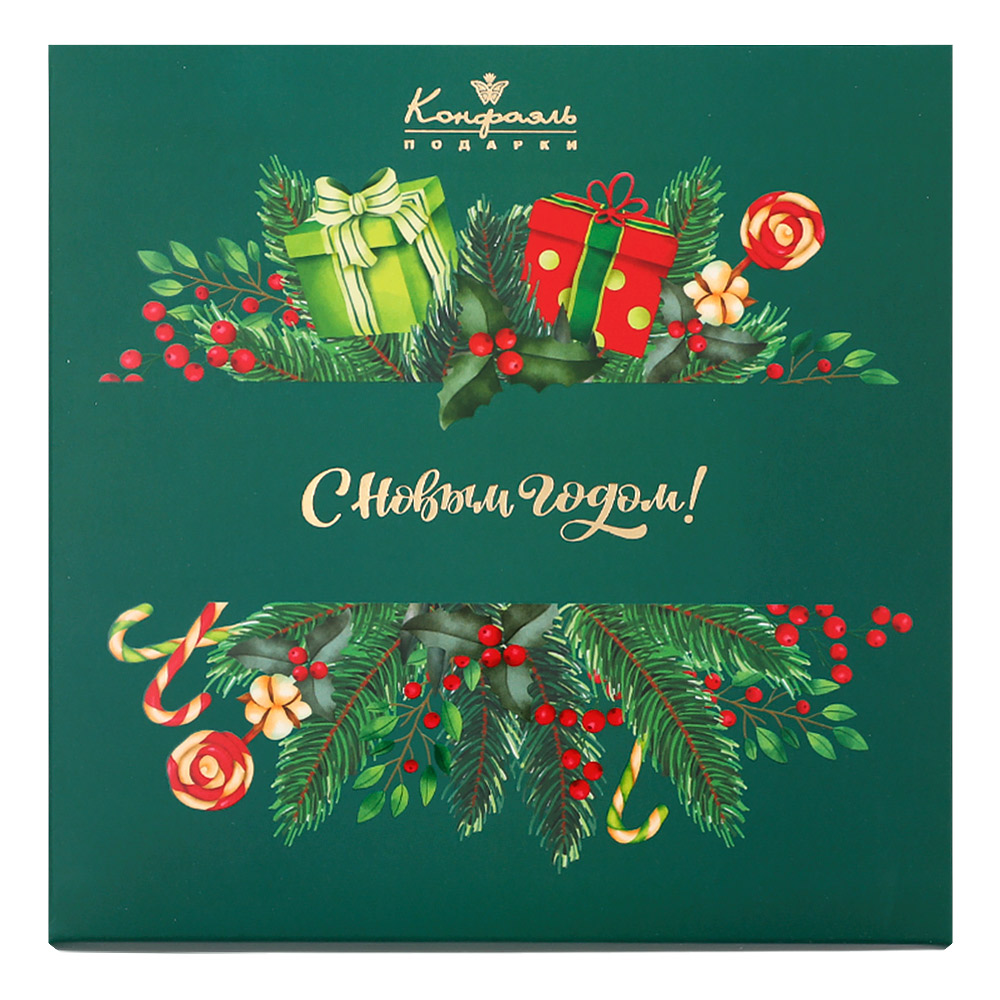 Праздничный дизайн. Конфетные наборы оформлены в новогодней стилистике.