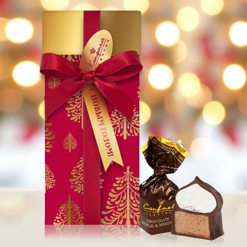 Состав: шоколадные массы – сахар, тертое какао, масло какао, какао-порошок, эмульгатор (лецитин соевый), натуральная ваниль; начинки – сахар, патока, молоко сгущенное (молоко цельное, сахар (сахароза, лактоза)), масло сливочное (из пастеризованных коровьих сливок), молоко сухое обезжиренное), белок яичный порошкообразный, какао-порошок, желирующий агент (агар), консервант (сорбиновая кислота), регулятор кислотности (лимонная кислота), эмульгаторы (лецитин соевый, Е471), сахарное украшение (сахар, белок яичный, регулятор кислотности (лимонная кислота), ароматизаторы. Продукция производится на предприятии, где используются арахис, кунжут, орехи, яичные и молочные продукты, злаки, содержащие глютен.