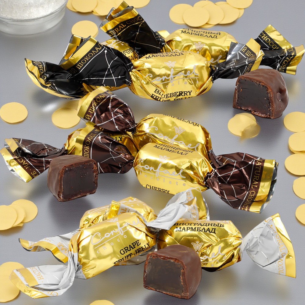 Конфеты «Желейные» в горьком шоколаде (виноградные, черничные, вишневые)