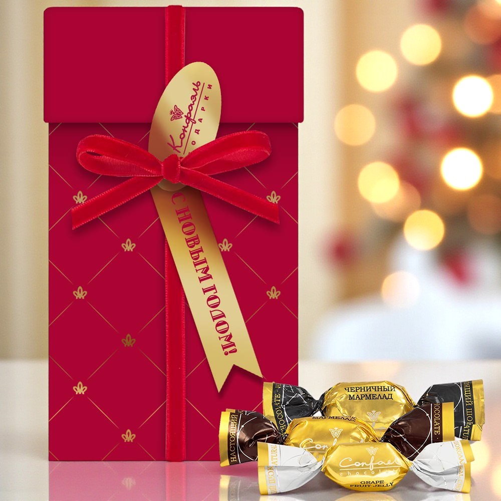 Ощути вкус настоящего праздника вместе с нашим новогодним набором фруктового мармелада в шоколаде!