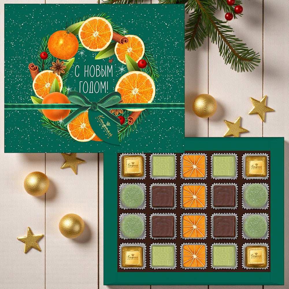Шоколадные конфеты «Ассорти» со сливочными начинками, с кремовой начинкой и декором, конфеты «Суфле» в горьком шоколаде(апельсиновое) , мармелад желейный со вкусом «Зеленая дыня»