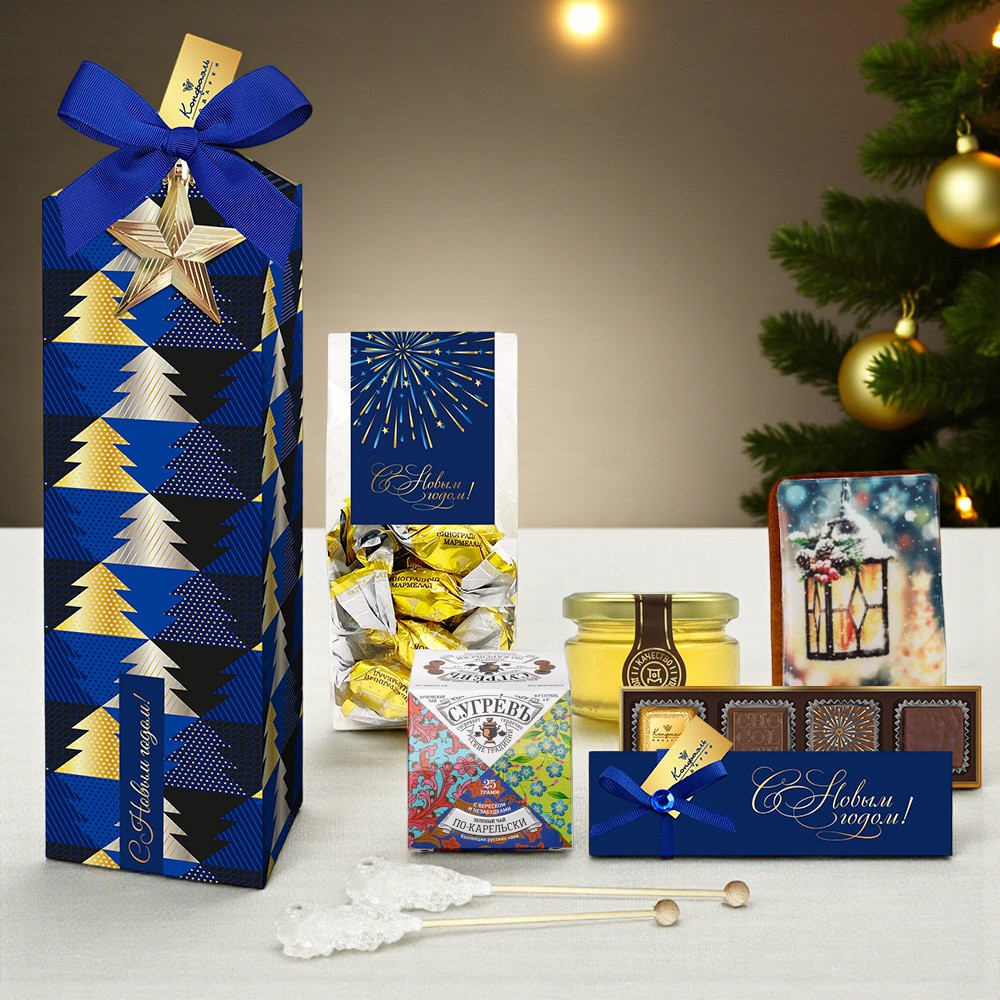 Поздравление малое 04/01/ Шоколадные конфеты «Ассорти» со сливочной и кремовой начинками, с кремовой начинкой и декором, конфета «Суфле» в горьком шоколаде (ананасовое)/ 30 г