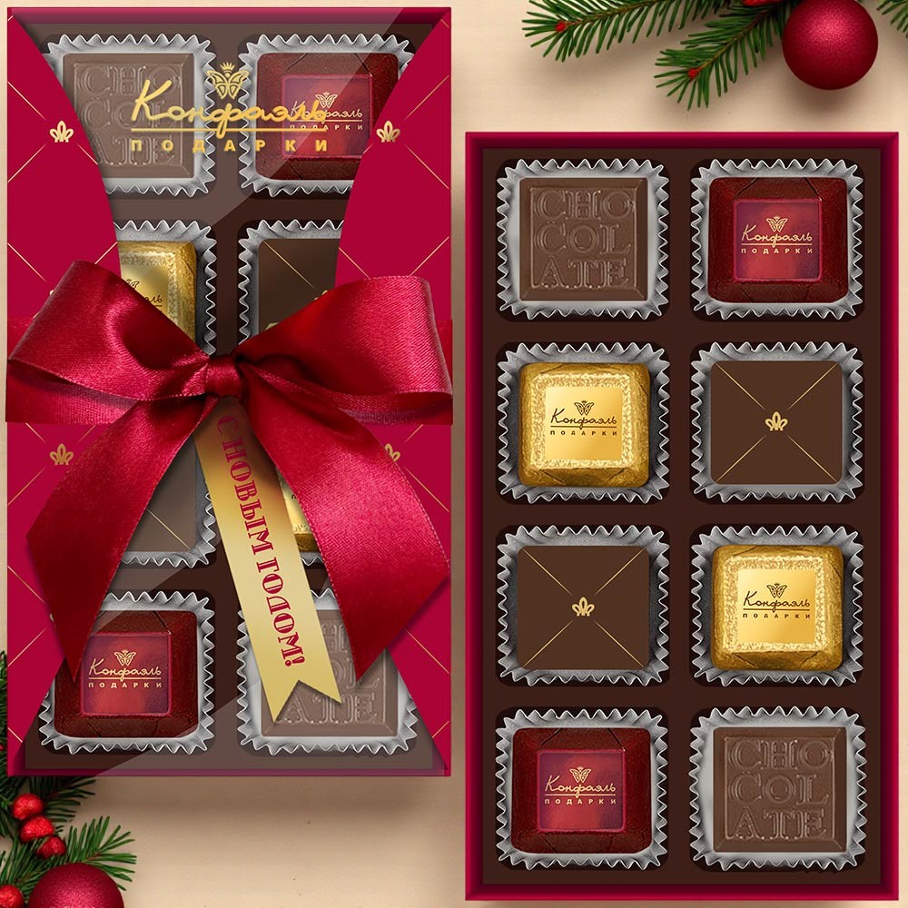 Шоколадная конфеты «Ассорти» со сливочными и кремовой начинками, с кремовой начинкой декором