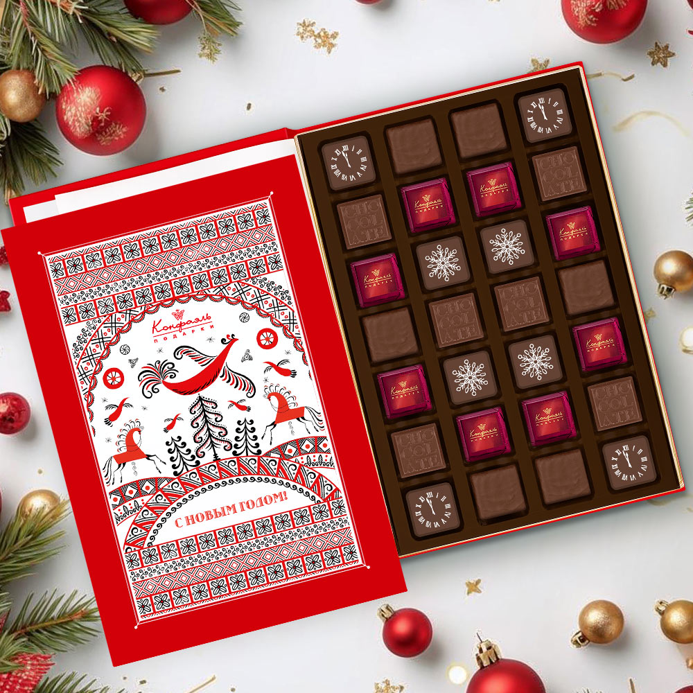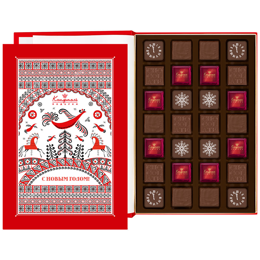 Состав: шоколадные массы - сахар, масло какао, молоко цельное сухое, какао тертое, какао-порошок, сыворотка молочная сухая, молочный жир, паста ореховая из ядер фундука, эмульгаторы (соевый лецитин,Е476), соль, ароматизаторы; начинки - сахар, патока, молоко сгущенное (молоко цельное, сахар (сахароза, лактоза)), масла растительные рафинированные дезодорированные (подсолнечное, рапсовое, оливковое; масло сладко-сливочное, молоко сухое обезжиренное), жир специального назначения (масло ши, рапсовое масло, соевое масло, антиокислитель( лимонная кислота)), молоко сухое цельное, молоко сухое обезжиренное, белый шоколад (сахар, масло какао, сухое обезжиренное молоко, сухое цельное молоко, эмульгатор (лецитин соевый), экстракт ванили), масло сладко - сливочное, белок яичный порошкообразный, натуральный концентрированный клубничный сок, вафельная крошка( мука пшеничная х/п первого сорта, сахар, масло кокосовое рафинированное дезодорированное, эмульгатор( лецитин соевый), пшеничные волокна (клетчатка), ароматизатор), стабилизаторы (мальтодекстрин, гуммиарабик), желирующий агент (агар), спирт этиловый ректификованный, консервант (сорбиновая кислота), регулятор кислотности (лимонная кислота), эмульгаторы (лецитин соевый, Е471), сухой сок ананаса, ароматизаторы, пищевые красители (сахарный колер, медные комплексы хлорофиллов и хлорофиллинов, куркумин); декор - пищевой краситель (Е171).