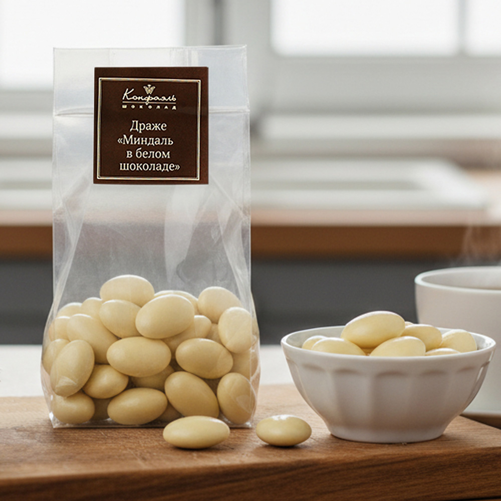 Прозрачная упаковка, не скрывающая своё соблазнительное содержимое - драже Фундук в белом шоколаде, - желанный подарок для ваших близких. Порадуйте же их поскорее!