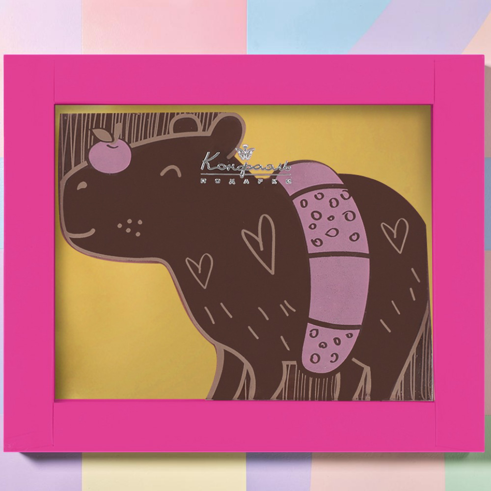 Шоколадная открытка с изображением капибары - это оригинальная и забавная идея для подарка.