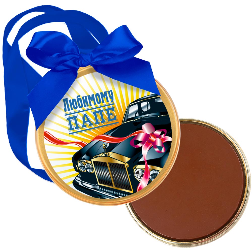 Яркая шоколадная медаль от «Конфаэль» с изображением «Роллс-Ройса» станет не просто лучшей наградой для него за любовь и ласку, которую он сможет носить на шее, но и сладким лакомством из нежнейшего молочного шоколада.