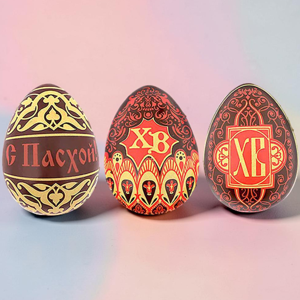 Пасхальный набор 3 яйца молочный шоколад (красно-желтый орнамент)