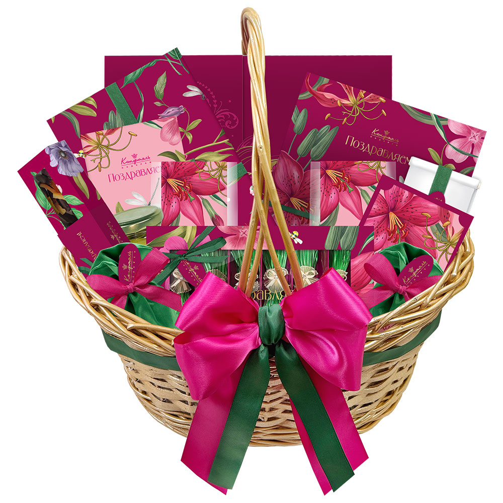 Поздравление 36/ Шоколадные конфеты «Ассорти» со сливочными и кремовой начинками, с кремовой начинкой и декором, конфеты «Желейные» в горьком шоколаде с декором (вишневые, яблочные), мармелад желейный «Апельсиновый» с декором/ 360г
