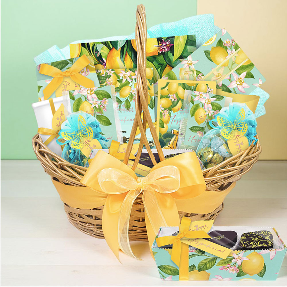 Подарочная корзина: шоколад, конфеты, оливки, кофе