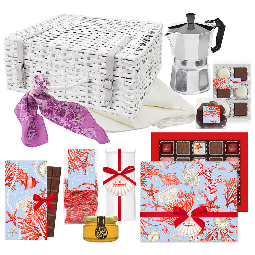 Подарочный набор: шоколад, драже, мармелад, конфеты глазированные, конфеты «Ассорти», мед, кофе