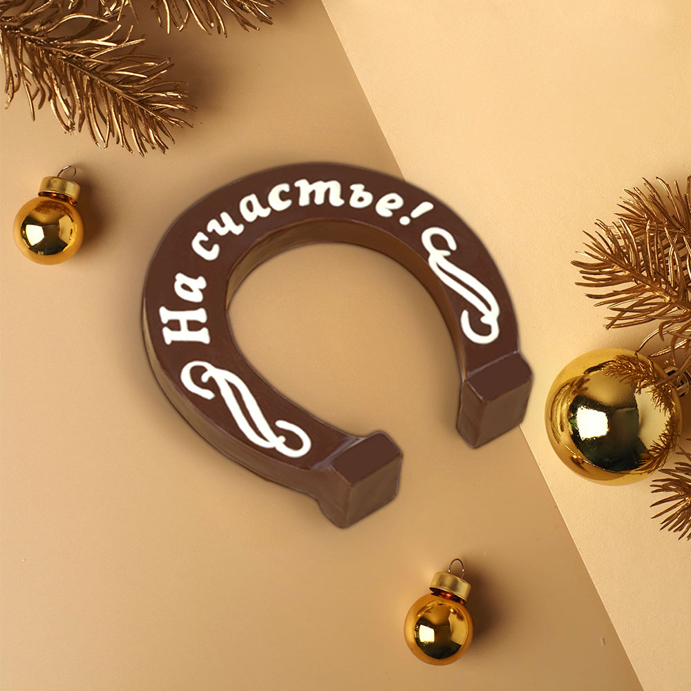 Состав: сахар, масло какао, сыворотка молочная сухая, тертое какао, пахта сухая, эмульгатор (лецитин соевый); декор – пищевые красители (кандурин золотой).