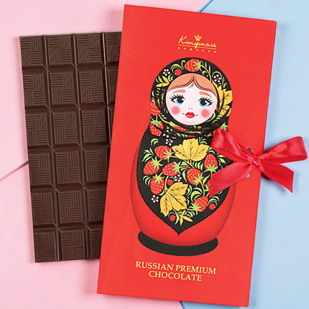 Элитный шоколад в ярко-красной упаковке с красавицей- идеальный презент, который приятно удивит и коллегу по работе, и близкого человека, и ребёнка. Вас закружили предпраздничные хлопоты? И вы не успели найти шоколадный подарок для своей семьи и друзей? Специально для них кондитеры «Конфаэль» приготовили вкусное угощение!