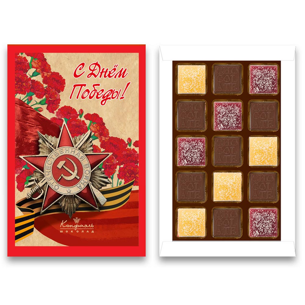 Приближается великий праздник — День Победы. Порадуйте близких, коллег и гостей изысканным сладким подарком: набором конфет и мармелада «С Днём Победы».