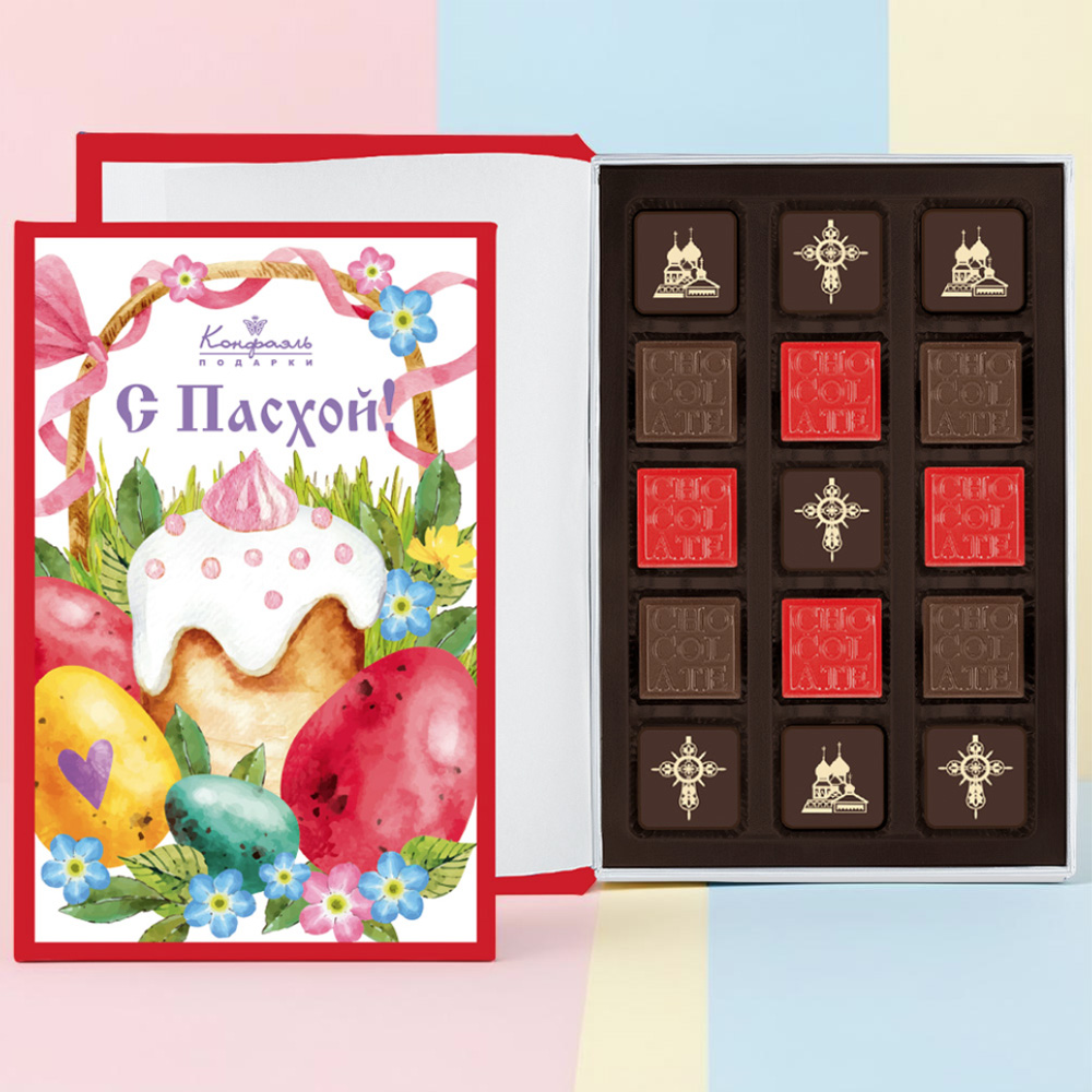 Состав: шоколадные массы - сахар, масло какао, молоко цельное сухое, сухое обезжиренное молоко, пахта сухая, какао тертое, какао-порошок, сыворотка молочная сухая, молочный жир, паста ореховая из ядер фундука, эмульгатор (соевый лецитин,Е476), соль, натуральная ваниль, ароматизаторы; начинки - сахар, патока, какао-масло, какао тертое, молоко сгущенное (молоко цельное, сахар (сахароза, лактоза)), масла растительные рафинированные дезодорированные (подсолнечное, рапсовое, оливковое; масло сладко-сливочное, молоко сухое обезжиренное), жир специального назначения (масло ши, рапсовое масло, соевое масло, антиокислитель( лимонная кислота)), молоко сухое цельное, молоко сухое обезжиренное, белый шоколад (сахар, масло какао, сухое обезжиренное молоко, сухое цельное молоко, эмульгатор (лецитин соевый), экстракт ванили), вафельная крошка( мука пшеничная х/п первого сорта, сахар, масло кокосовое рафинированное дезодорированное, эмульгатор( лецитин соевый), пшеничные волокна (клетчатка), ароматизатор), кокосовая стружка, стабилизатор (мальтодекстрин), коньяк (дистиллят коньячный, вода, сахар, пищевой краситель (сахарный колер)), консервант (сорбиновая кислота), регулятор кислотности (лимонная кислота), эмульгаторы (лецитин соевый, Е471), ароматизаторы, пищевые красители (сахарный колер, красный свекольный); декор - пищевой краситель (Е171)