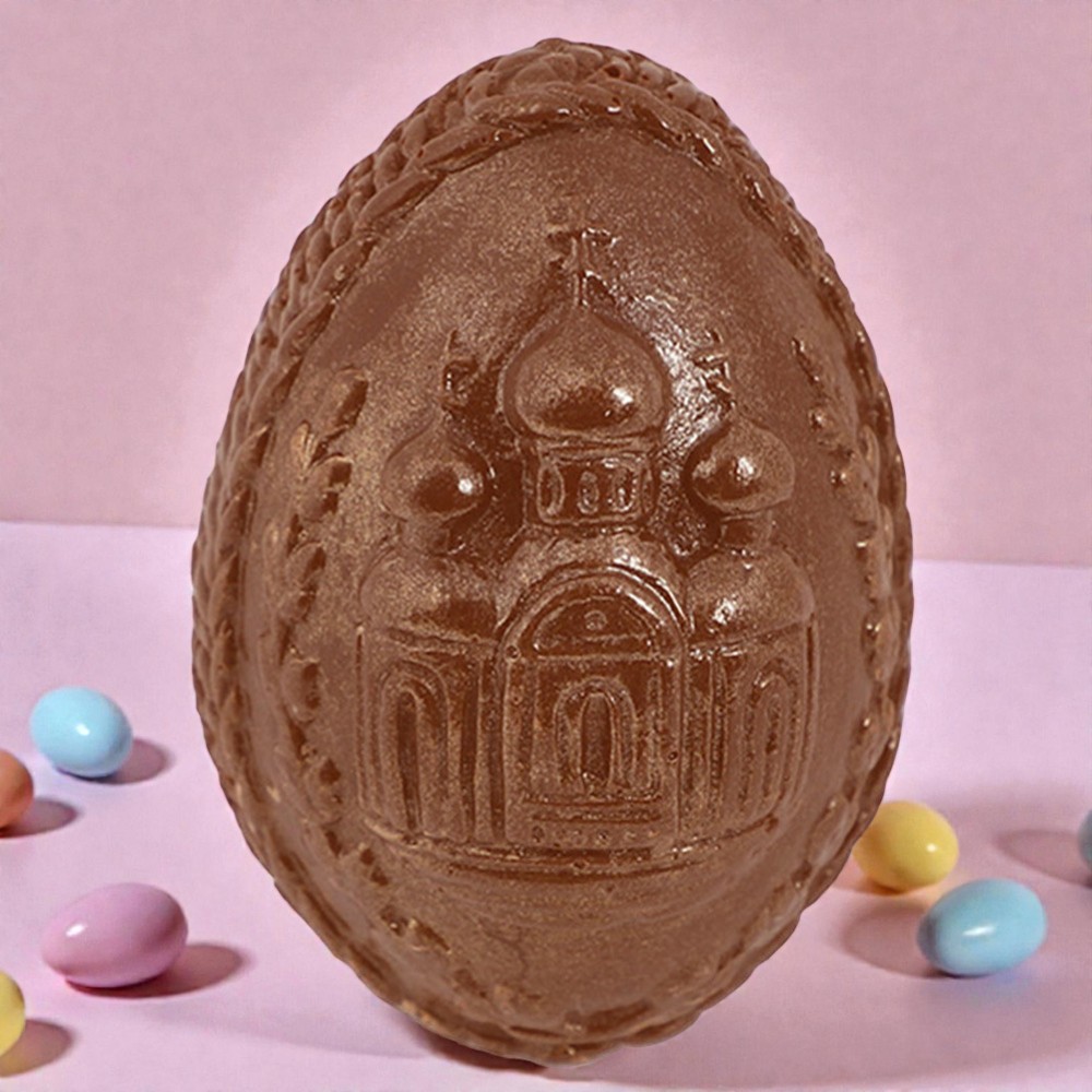 Специально к пасхальным праздникам мы приготовили целую коллекцию шоколадных яиц с барельефными узорами. Жемчужина этой коллекции – яйцо из молочного шоколада.