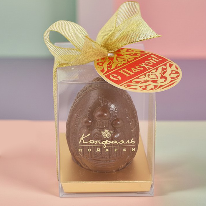 Специально к пасхальным праздникам мы приготовили целую коллекцию шоколадных яиц с барельефными узорами. Жемчужина этой коллекции – яйцо из молочного шоколада.
