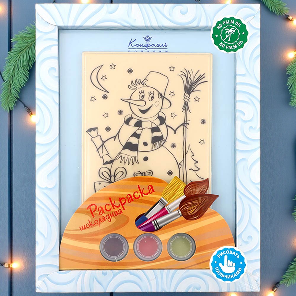 Оригинальная шоколадная раскраска "Снеговик" станет превосходным детским подарком на Новый год.
