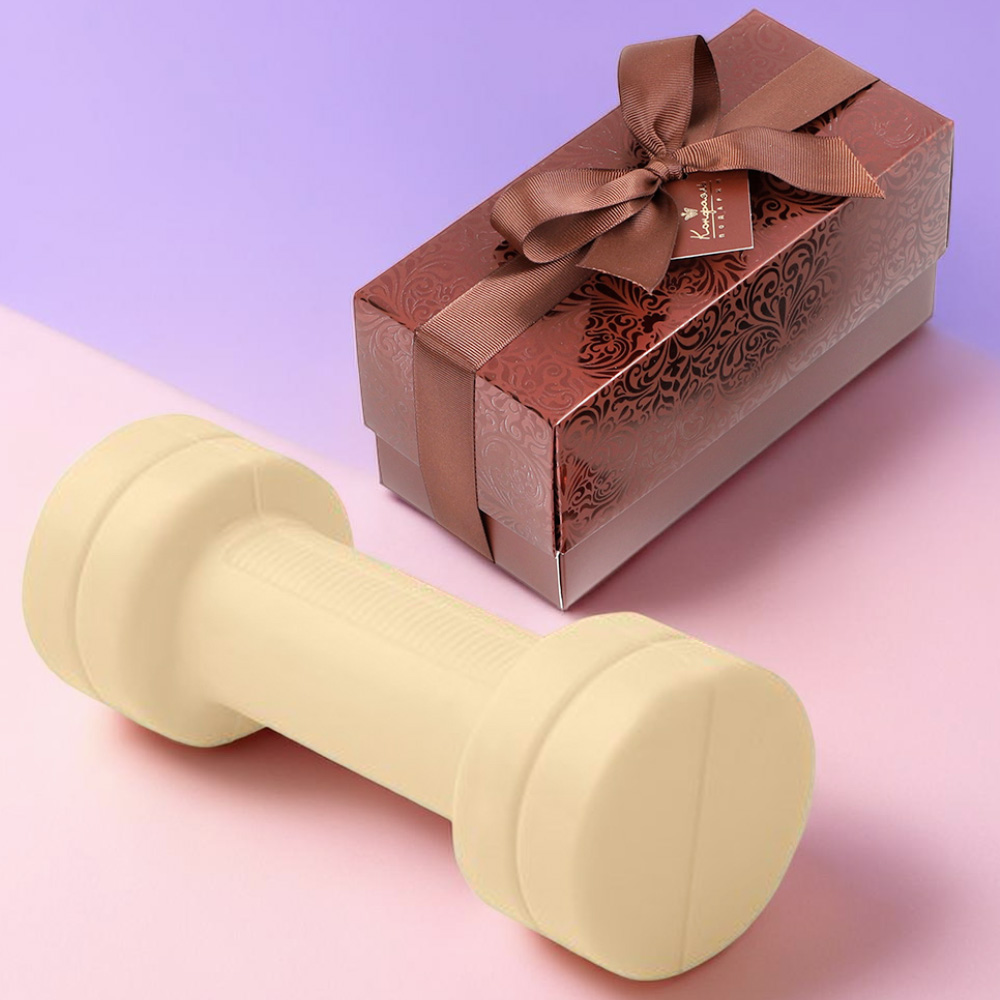 Белый шоколад-гантель, изготовленный из элитного сырья с добавлением натуральных вкусовых добавок, - приятный сладкий сюрприз для ваших близких!