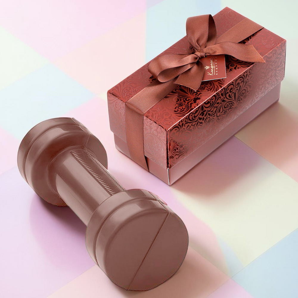 Небольшая шоколадка-гантелька будет удачным дополнением к любому подарку и обязательно останется в памяти тех, кому вы преподнесёте это лакомство с экстравагантной конфигурацией.
