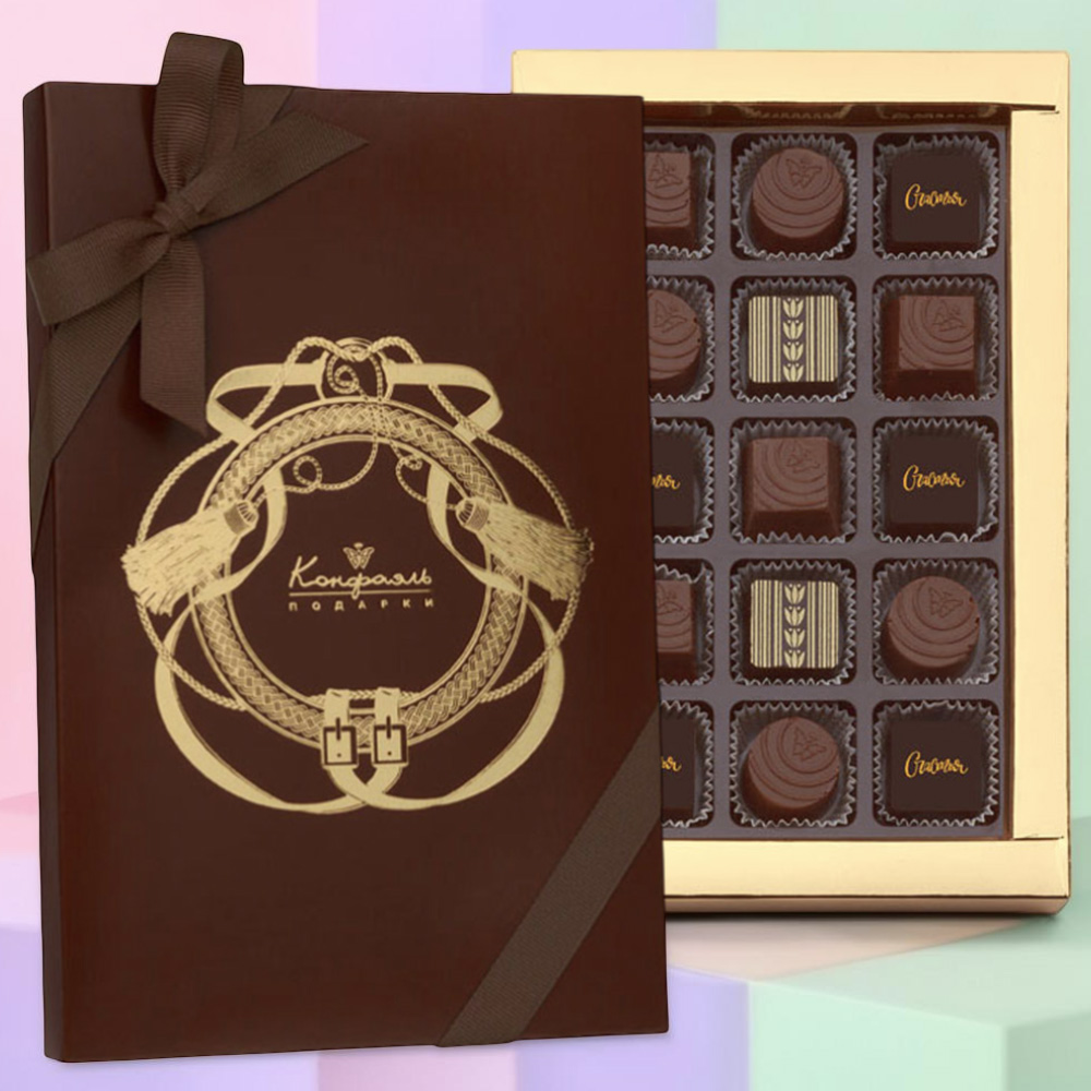 Выбирая подарок порой так сложно найти что-то, полное благородного минимализма и простоты в поздравлении. Этот подарочный набор прекрасно подходит под такую характеристику! Внутри мы разместили ассорти из шоколадных конфет.