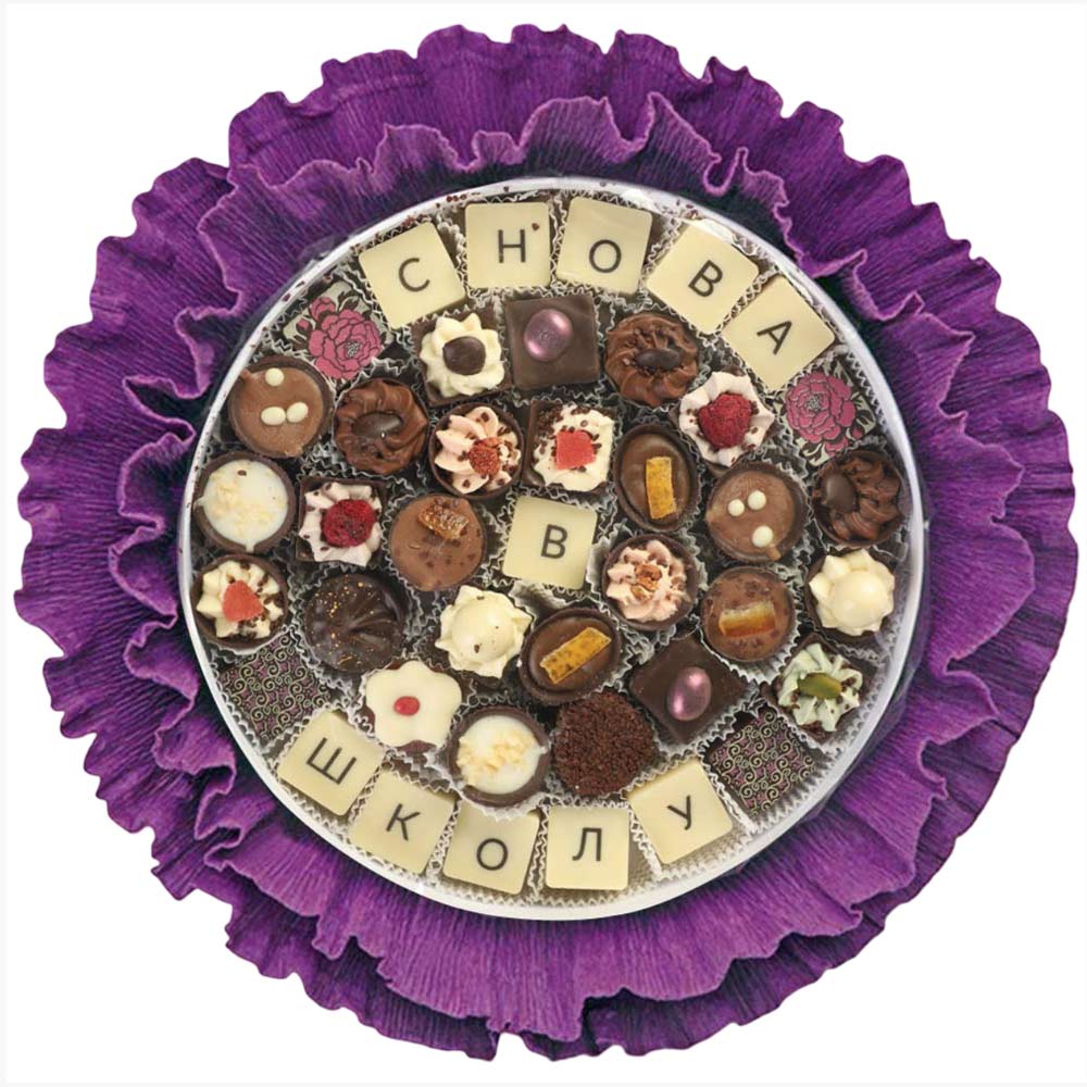 Набор необыкновенно вкусных лакомств - желейного мармелада и конфет из элитного настоящего шоколада - в виде нарядного букета «Снова в школу».