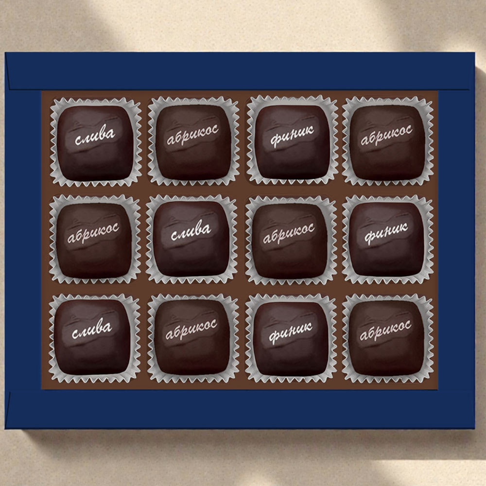 Конфеты "сухофрукты" в горьком шоколаде( финик, слива, абрикос)