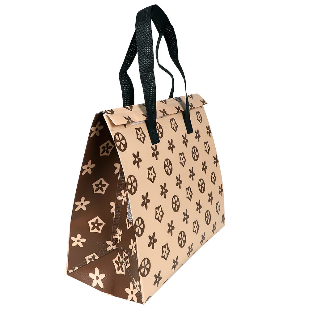 Сумка из ламинированного нетканого материала с фольгированным слоем(3-х слойная) застежка-липучка многоразовая, ручки 50 см