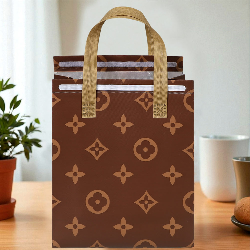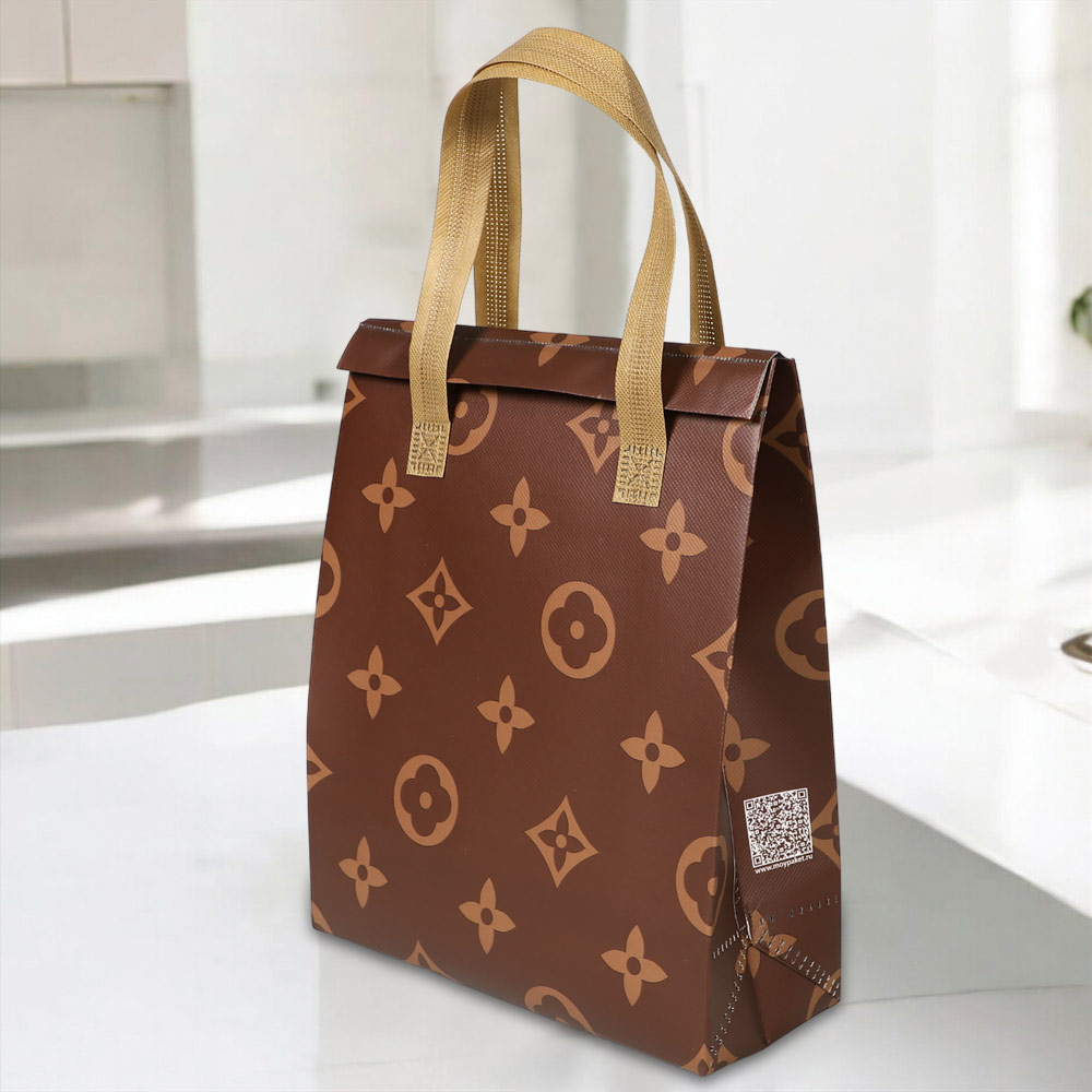 Термопакет коричневый с рисунком 25*30*10 (застежка-липучка многоразовая)