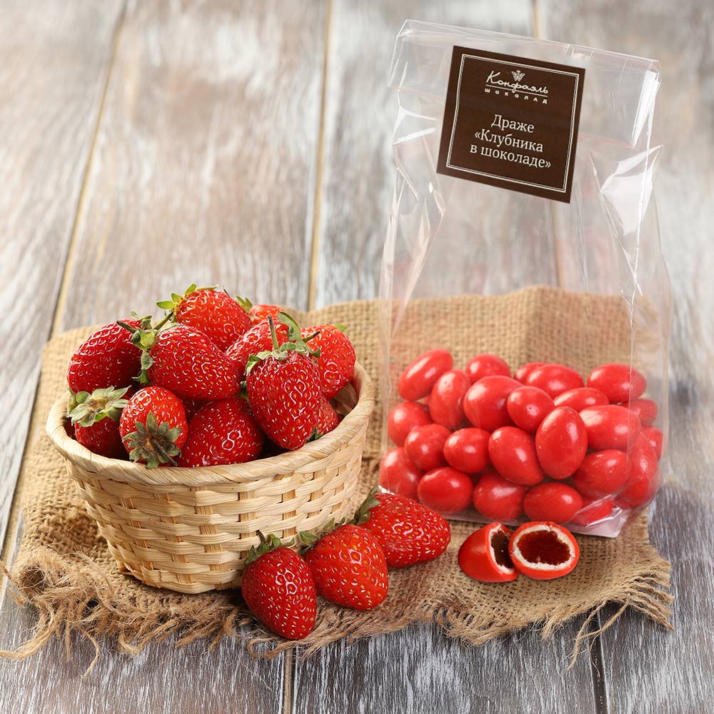 "Любимый вкус" цукаты в белом шоколаде в ассортименте - Драже Клубника в шоколаде 150г