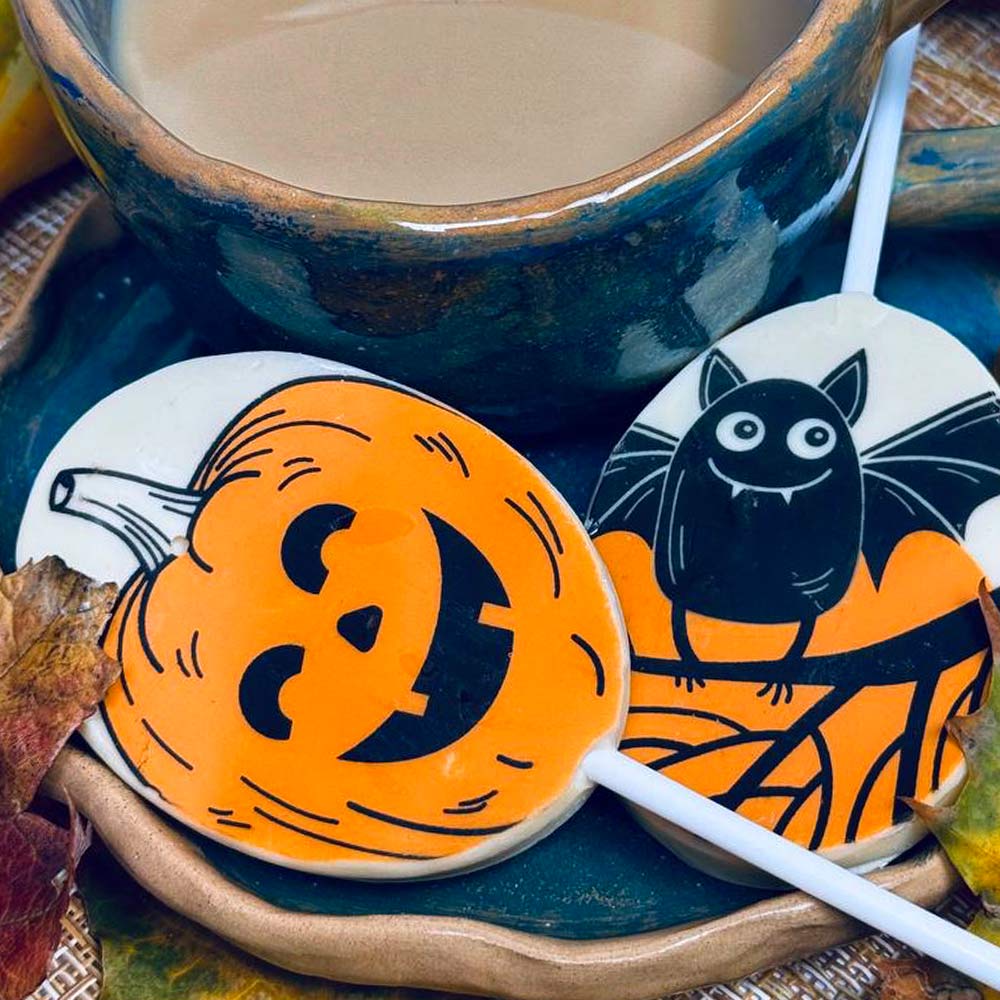 Угощение или жизнь? Так обычно выпрашивают сладости на Хэллоуин Конечно же угощение! Этот очаровательный леденец из белого шоколада обязательно понравится Вашему ребенку! Скоротайте осенний вечер за поеданием сладостей от Конфаэль!