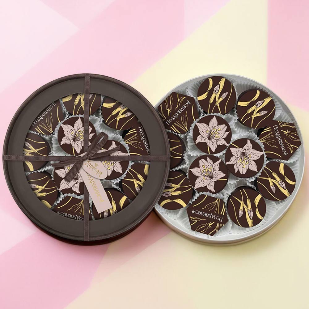 Состав: шоколад – сахар, какао тёртое, масло какао, эмульгатор (лецитин соевый), ароматизатор; начинки – сахар, патока, молоко сгущенное (молоко цельное, сахар (сахароза, лактоза)), масло сладко-сливочное, желирующий агент (агар), яичный белок, какао-порошок, эмульгатор (Е471), ароматизаторы, натуральный экстракт кофе, натуральный пищевой краситель «Сахарный колер»; декор – пищевые красители (красный свекольный, Е171, Е132, медные комплексы хлорофиллов и хлорофиллинов). Продукция производится на предприятии, где используются арахис, кунжут, орехи, яичные и молочные продукты, злаки, содержащие глютен.