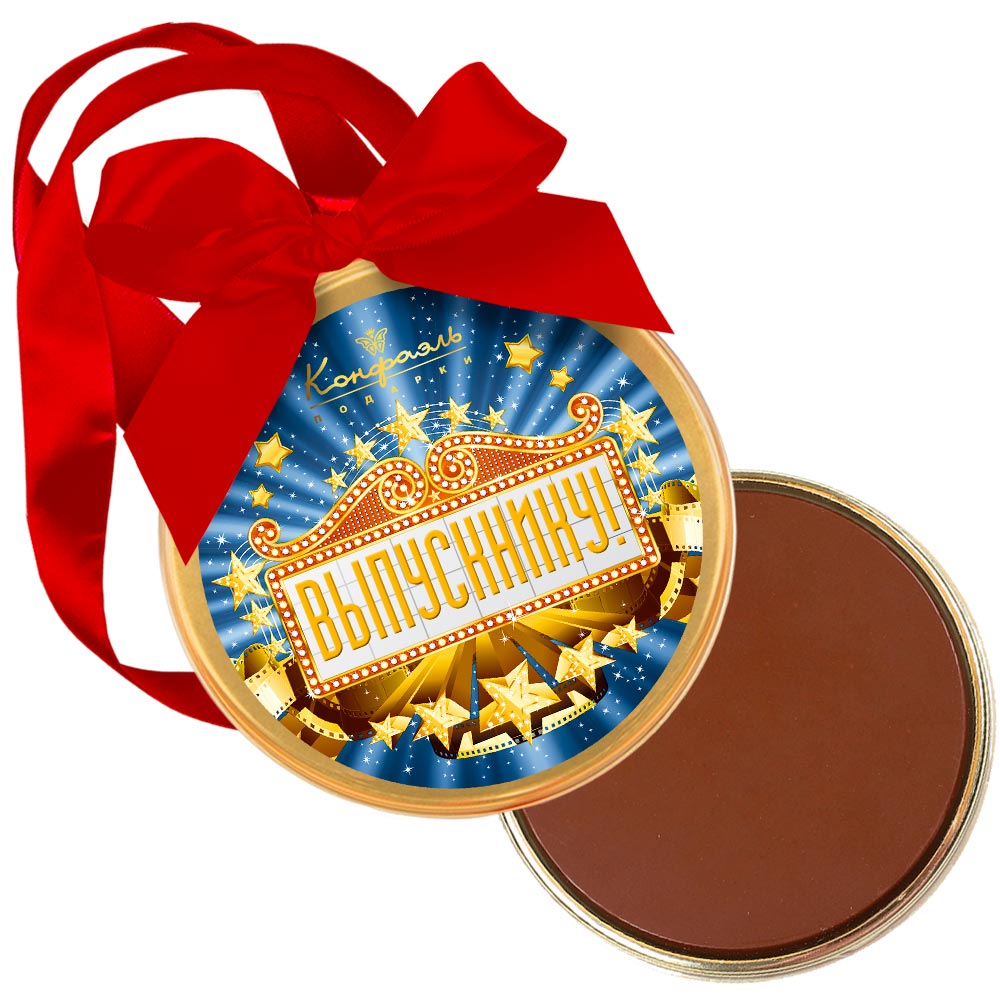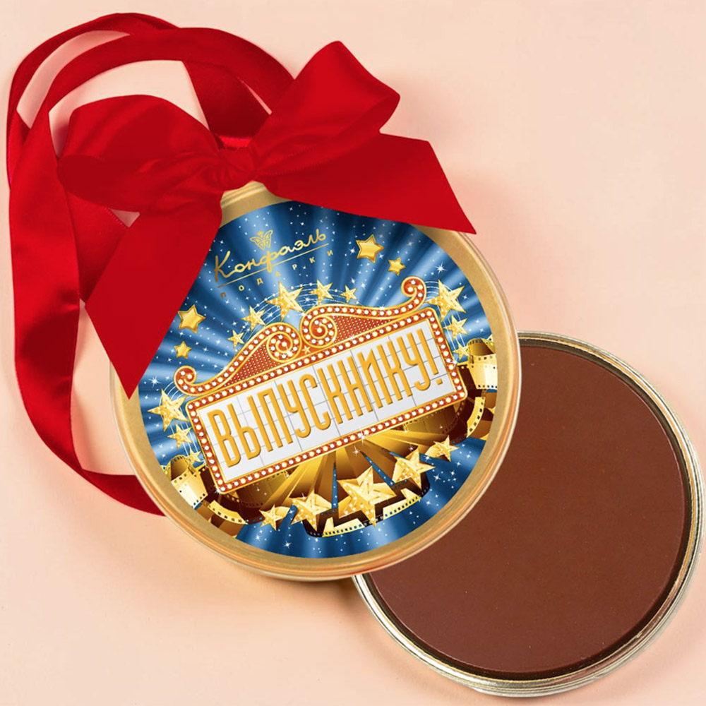 Сверкающая медаль «Выпускнику», изготовленная из шоколада, подчеркнёт важность события - окончания школы или вуза - и подсластит горечь расставания с прошлым.