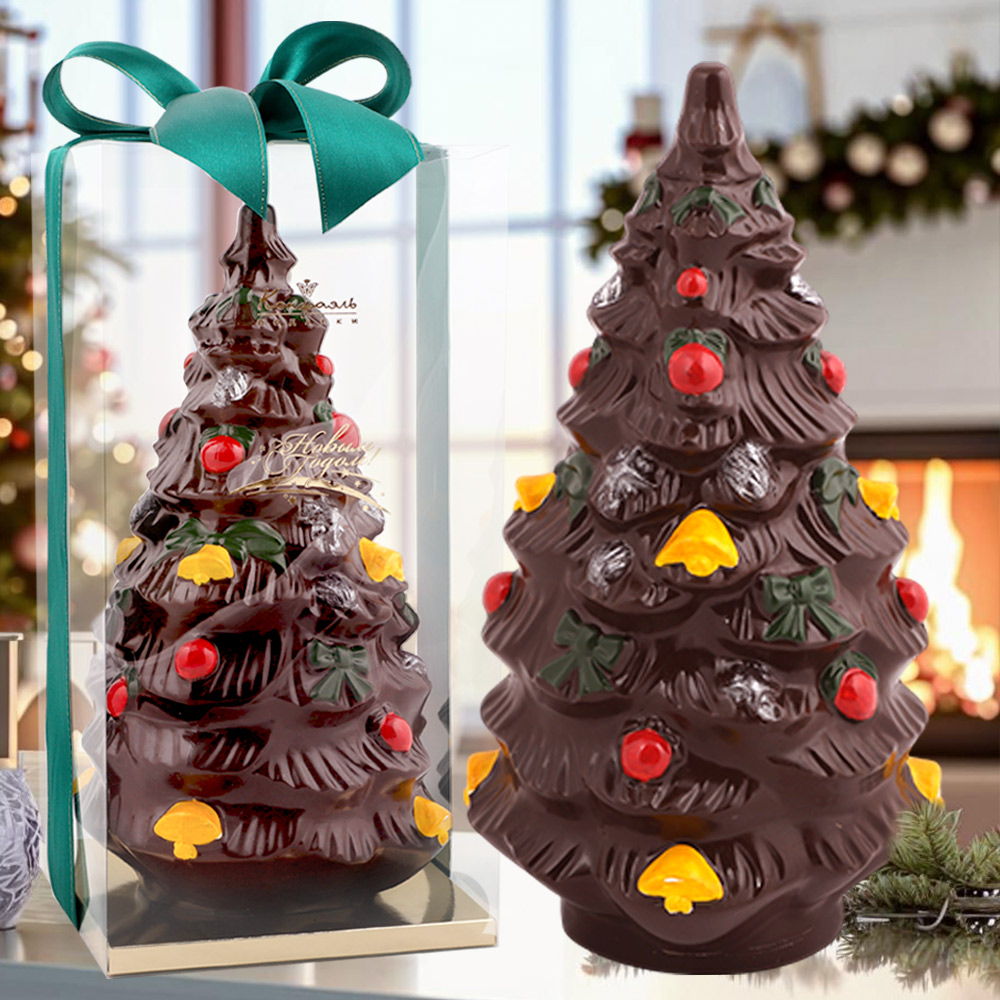 Огромная елка, изготовленная из настоящего молочного шоколада, станет самым вкусным лакомством для маленьких сладкоежек. Роскошный сувенир к Новому году!